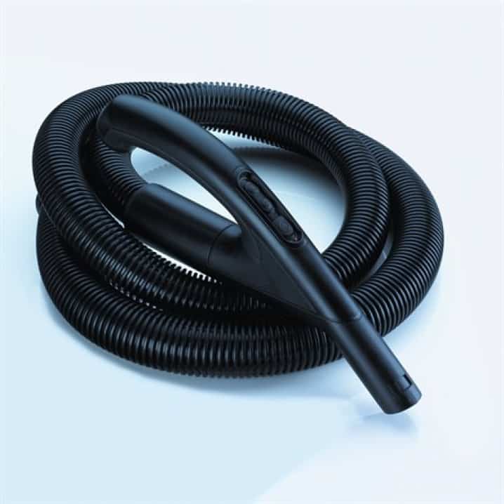 Original Nilfisk x300 slange med fjernbetjening. Fjernbetjeningen gør det muligt at tænde og slukke støvsugeren via. grebet/håndtaget, samt at op/nedregulerer sugekraften