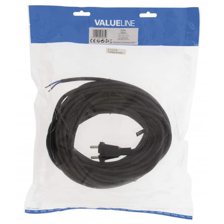 Ledning m/støbt hanstik 2 x 0,75 kvadrat og en længde på 15m. Ledningen kan bl.a. benyttes til udskiftning af opslidte ledninger på maskiner uden ledningsoprul, eksempelvis: